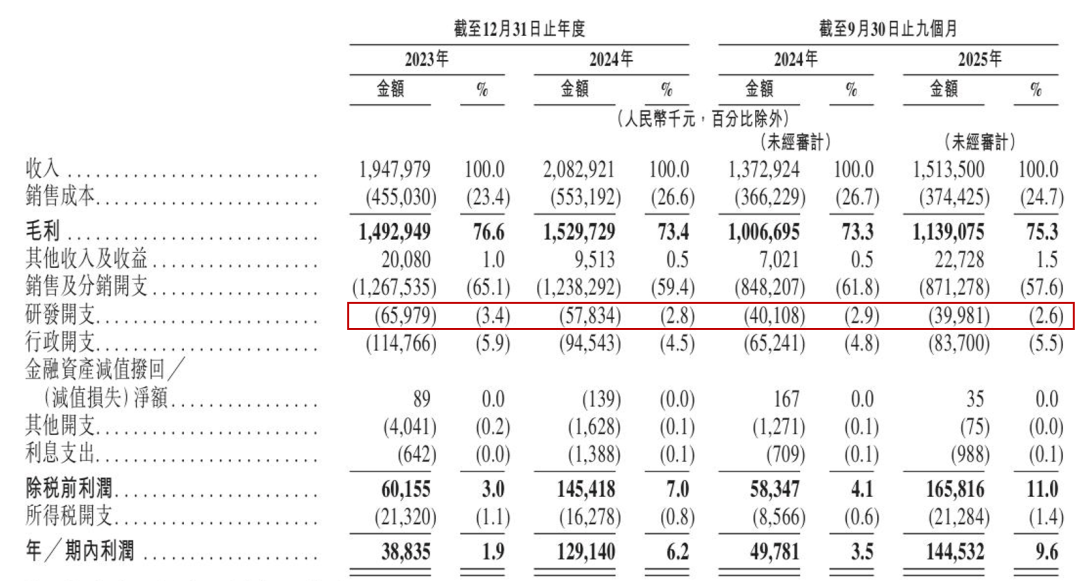 2025年前三季度这一比例更降至2.6%,与其“科研驱动”的品牌定位严重不符。