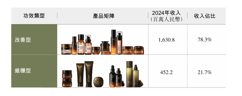 其中发光水与A醇系列以销量计,2022至2024年连续三年位居中国市场同类产品第一。